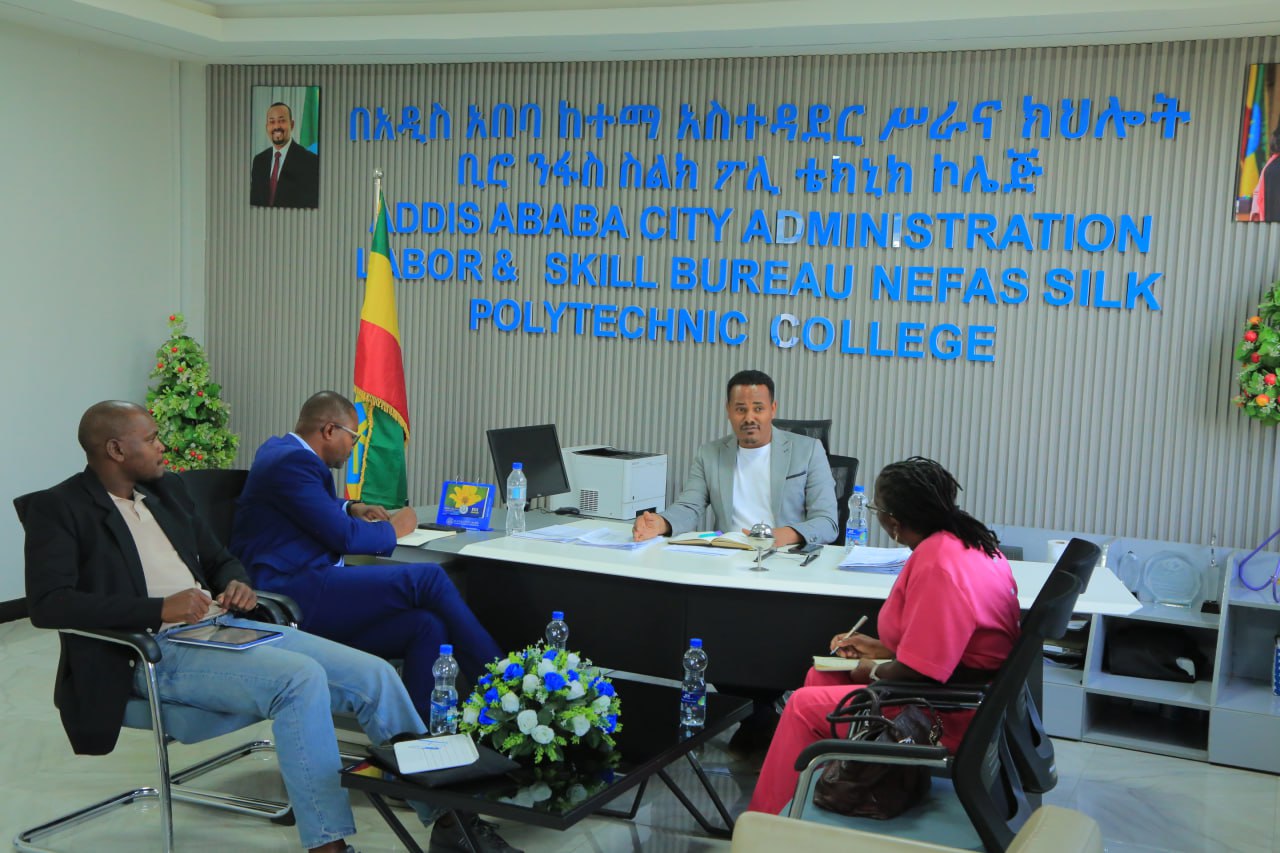 During the session, Mr. Shelema Nigussu, Dean of Nifas Silk Polytechnic College, welcomed the delegation and provided an overview of the college’s achievements. He highlighted the colleges success in producing competent, industry-ready graduates, and shared insights on key focus areas such as cooperative training, curriculum development, technology transfer, and public–private partnership implementation.